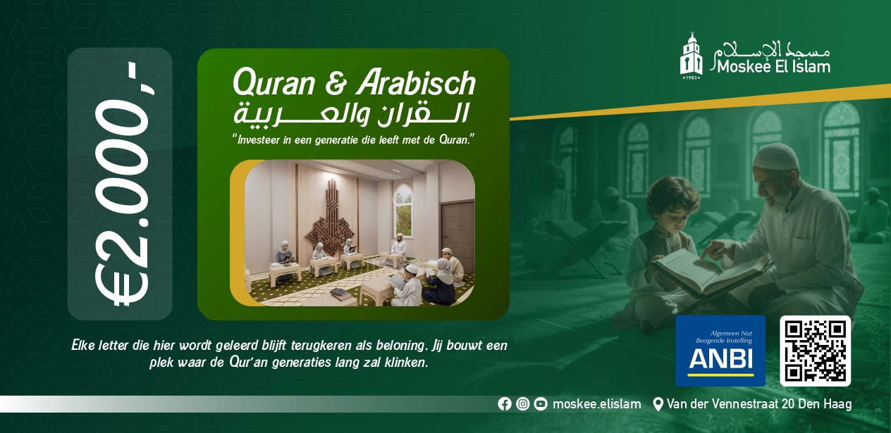 Wij investeren in een plek waar de Qur’an leeft. Waar kinderen leren lezen, jongeren groeien in kennis en karakter, en waar de volgende generatie huffadh wordt gevormd. Deze moskee leidt al jaren haar eigen huffadh op. Dat zien we vandaag terug in de taraweeh en zelfs binnen het bestuur.